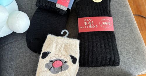 暖かい靴下を、昔は結構いいお値段のを買っていたのですが、最近はどこにでもありますね! チュチュアンナで発見しました。 これも3つで1000円の分です。 パピオと娘と私用に買いました。 冬は私は靴下を履いてねますので、ゴム口が柔らかいのにしまし…