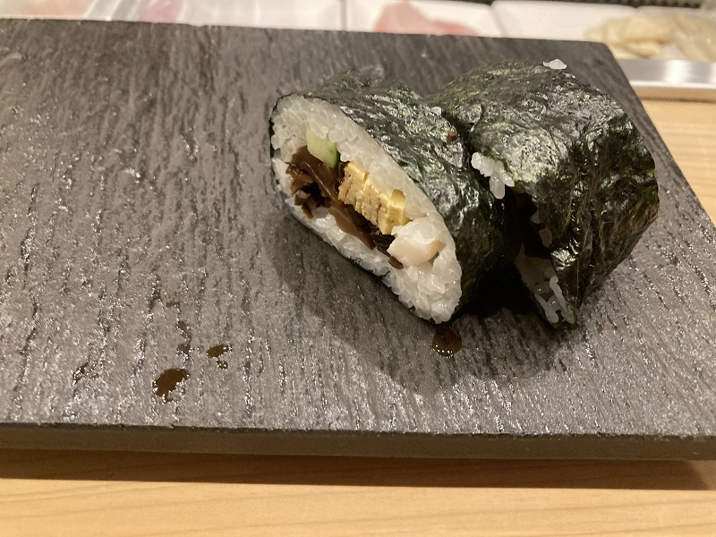 巻きずしも目の前で巻いて、カットされていました。